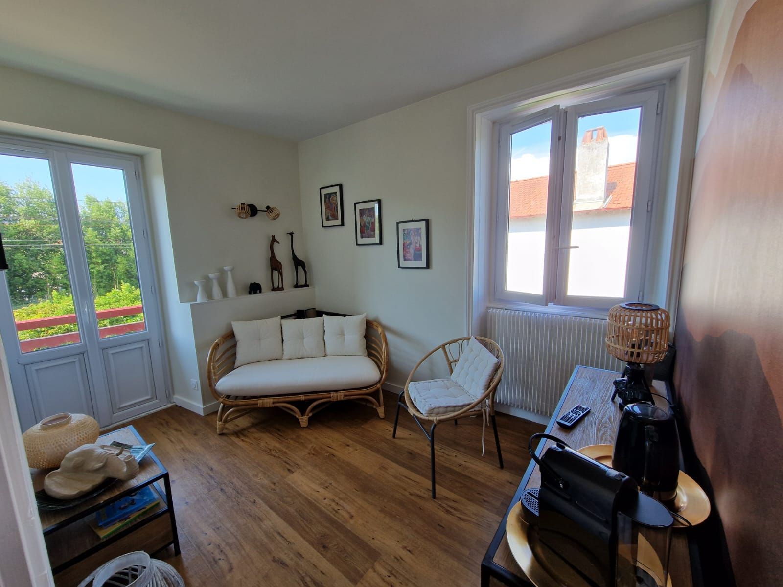 Terrasse de 100 m2 avec salon d’été, transats, jardin 300 m². Océan à 300m.